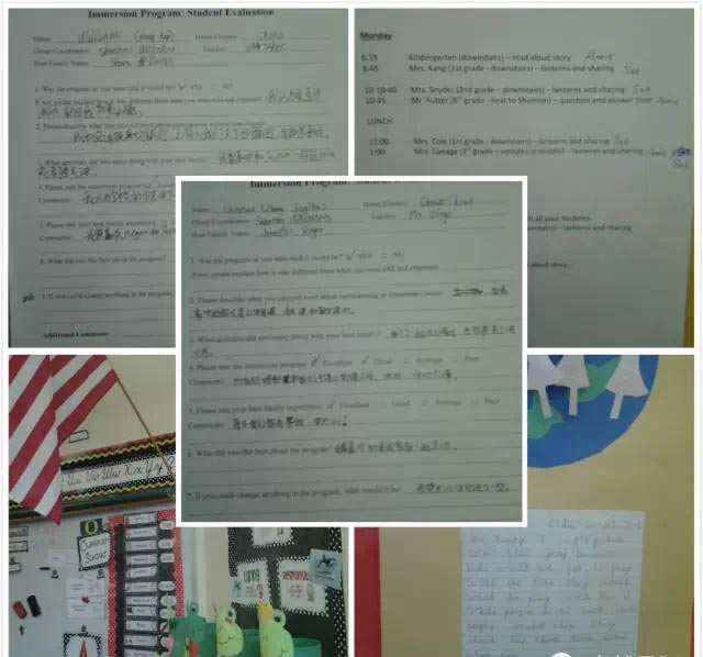 今天來到學(xué)校的第一件事情帶隊(duì)老師就及時(shí)了解孩子們的周末情況,身體狀況,心情如何;調(diào)查結(jié)果顯示孩子們周末過得都還不錯(cuò),直到現(xiàn)在都還沉浸在美好的回憶中。在活動(dòng)評(píng)估表上,大家不約而同地寫著“最喜歡和美國家庭在一起”。