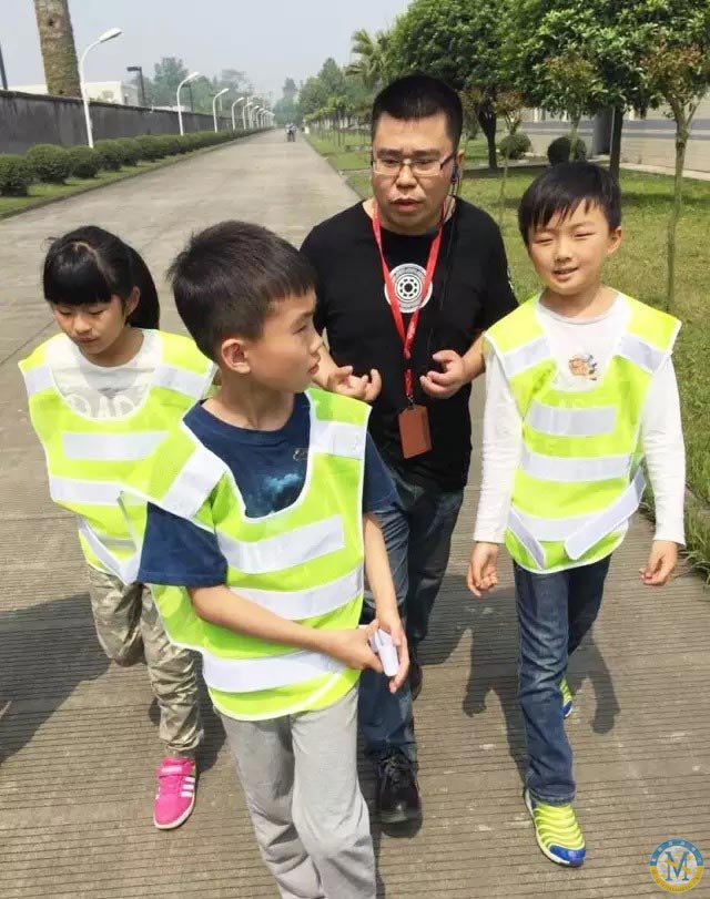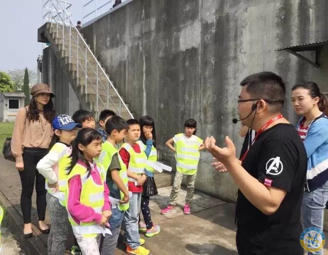 穿上白綠相間的條紋背心,猶如一大群熱帶魚歡快來襲,孩子們跟隨著講解人員,開始暢游水工廠,尋覓答案咯!