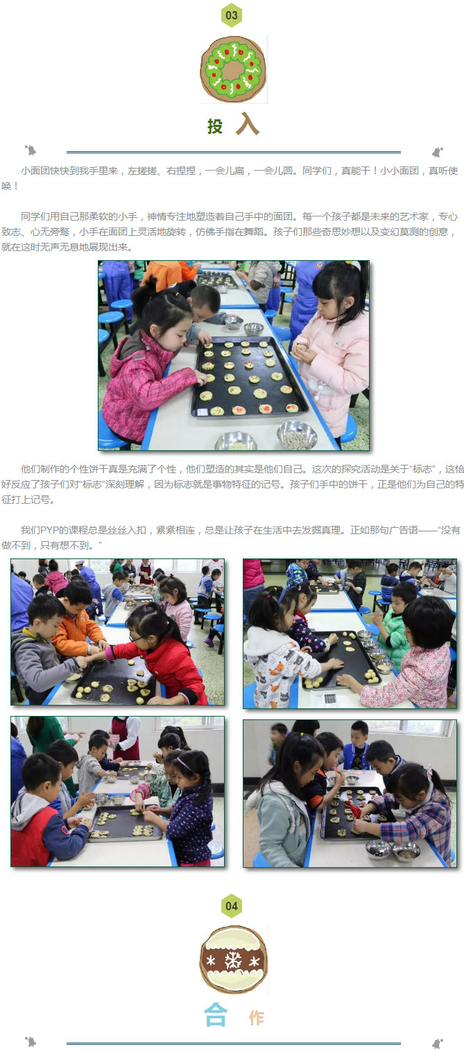 PYP的孩子們在第二個超學科探究“我們如何組織自己”的實踐活動中,動手制作——“個性餅干”。