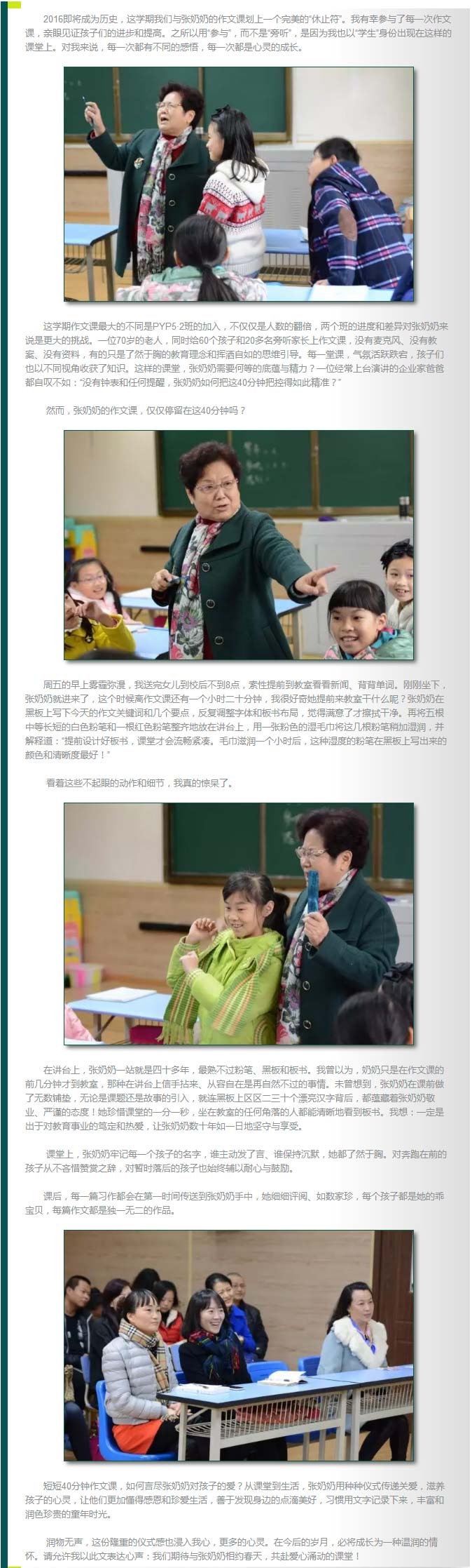 從四年級開始,PYP的孩子與家長在張奶奶作文課堂上共同成長,共享美好。