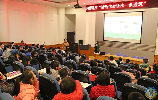 這次講座的主題是“請給生命讓出一條通道”,熱情的叔叔阿姨為孩子們進(jìn)行交通法規(guī)的宣講。同學(xué)們觀察道路圖片,然后提問交流,通過交流他們認(rèn)識了應(yīng)急車道。