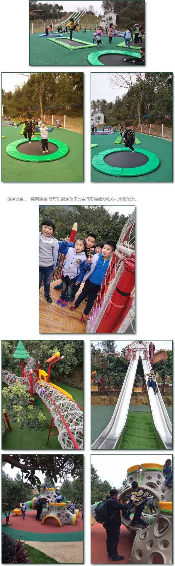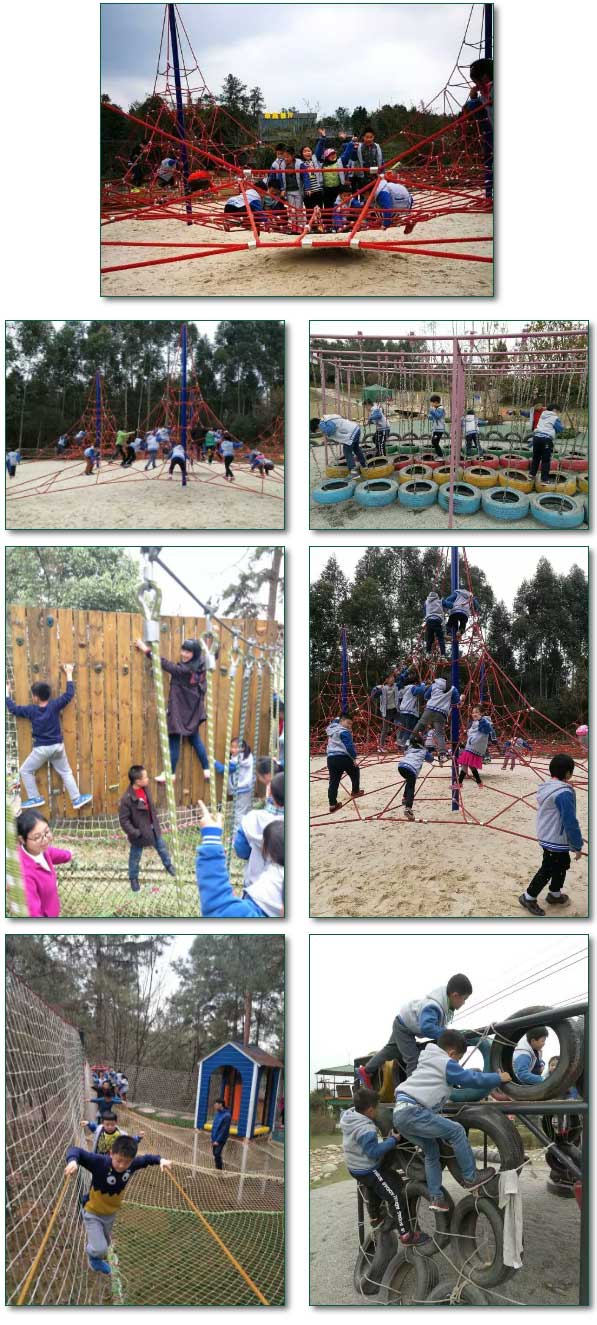 用比賽、合作等方式參與“高空攀爬”和“叢林穿越”等游戲,孩子們?cè)诜潘傻耐瑫r(shí),鍛煉膽量,培養(yǎng)團(tuán)隊(duì)合作的意識(shí)。