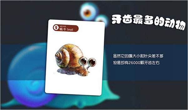 今天的主題是動物探索之旅,小智哥哥先帶領(lǐng)大家一起了解了有趣的動物之最:你知道世界上牙齒最多的動物是什么嗎?是蝸牛,別看它身材小小,它的牙齒有26000顆那么多呢!