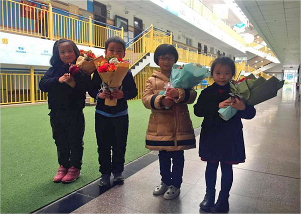 小朋友們還專門為老師們準(zhǔn)備了鮮花表示感謝,從小懂得感恩。