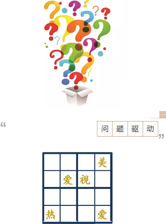 把“熱愛美視”四個字填入下面表格中,使“熱愛美視”每個字在每一行、每一列和每一宮( 宮,指圖中粗線圍成的部分)中都只出現(xiàn)一次,你會嗎?