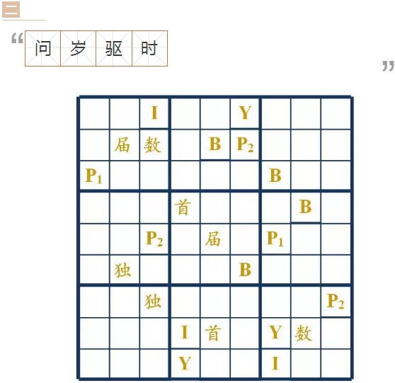 把“IBP1YP2首屆數(shù)獨”九個字母或文字填入下面表格中,使每個字母或文字在每一行、每一列和每一宮中都只出現(xiàn)一次,完成它你需要多久呢?