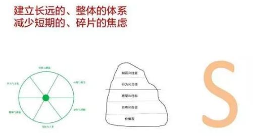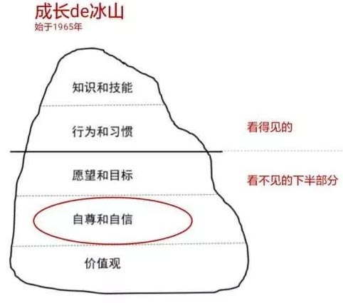 一個人的“自我”就像一座漂浮在水面上的巨大冰山。能夠被外界看到的行為表現(xiàn)或應對方式——“知識和技能”、“行動和習慣”,只是露在水面上很小的一部分,而暗涌在水面之下更大的山體,則是長期壓抑并被我們忽略的“內(nèi)在”——“愿望和目標”、“自尊與自信”、“價值觀”。