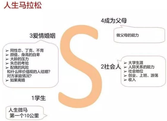 現(xiàn)階段(0——18歲)只是人生的微馬時期,真正的考驗在后面四分之三的路途。
