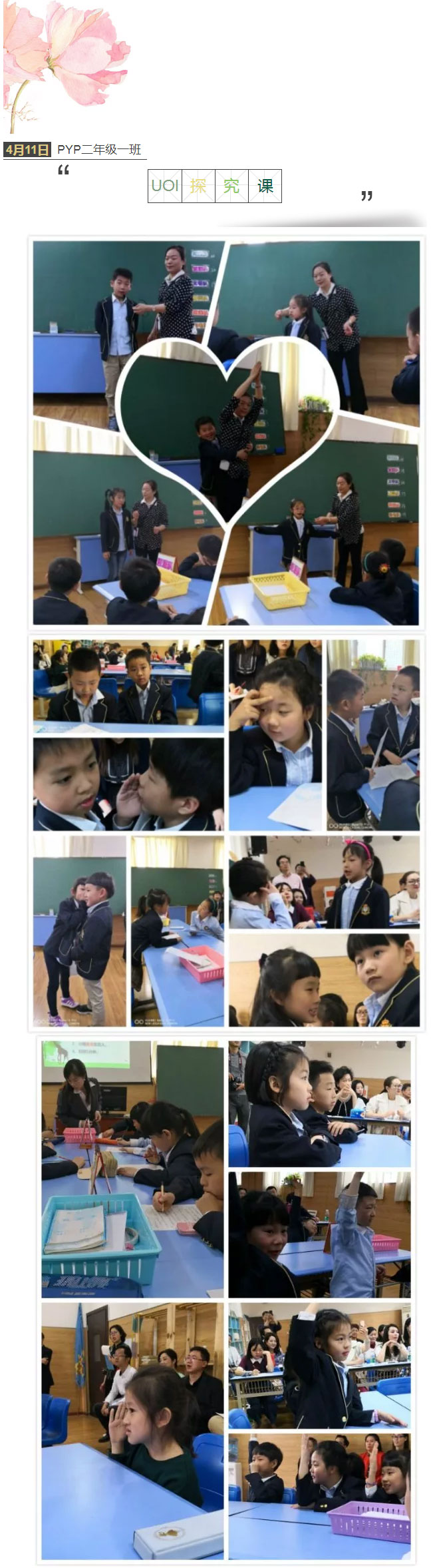 這樣的探究,絕不僅是知識(shí)的簡(jiǎn)單獲取,更是做事態(tài)度和行動(dòng)技能的沉淀。“路曼曼其修遠(yuǎn)兮,吾將上下而求索。”在UOI這個(gè)全新課程領(lǐng)域,希望孩子們?cè)诮酉聛?lái)的探究中,在家長(zhǎng)和老師的陪伴下,獲取更多生命的養(yǎng)料,像花兒一樣燦爛綻放!
