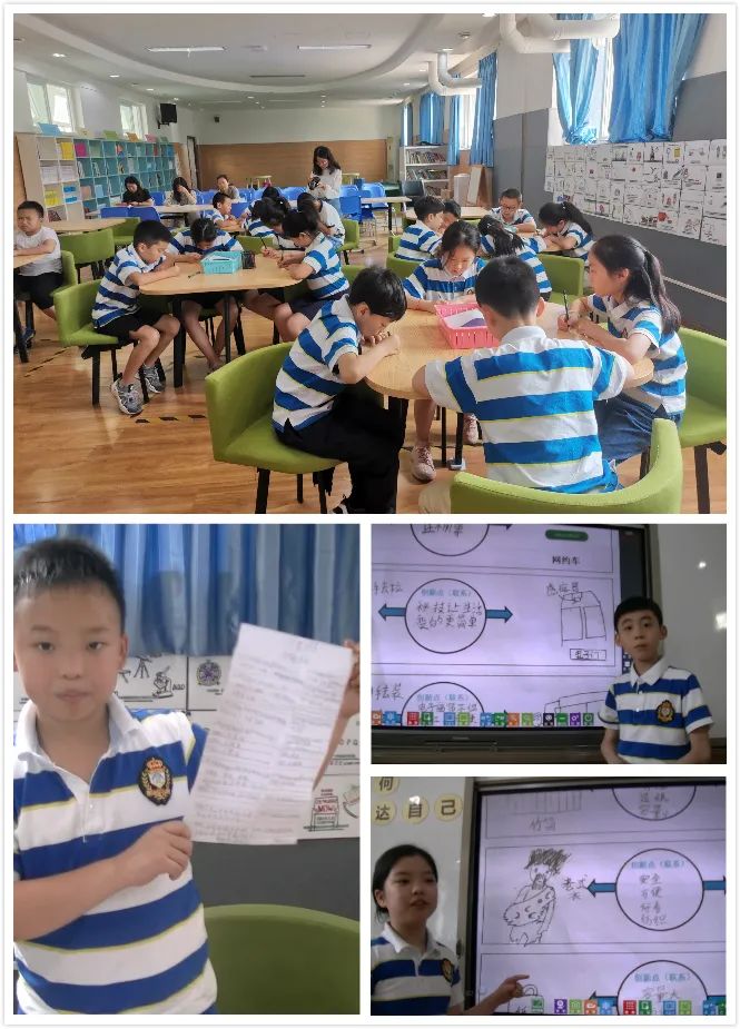 在導入環(huán)節(jié)中,老師們帶領(lǐng)孩子們通過準備整理有關(guān)發(fā)明創(chuàng)造的名人名言,應(yīng)用科學思想,解決設(shè)計問題,探究了發(fā)明的共同點。孩子們選擇了擅長的方式來表達自己的想法,包括時間軸、表格、繪畫和口頭表達等,他們選擇的任何一種方式都達到了有效的表現(xiàn)思維律動的目的。