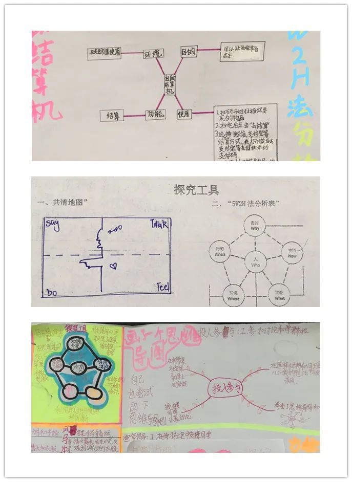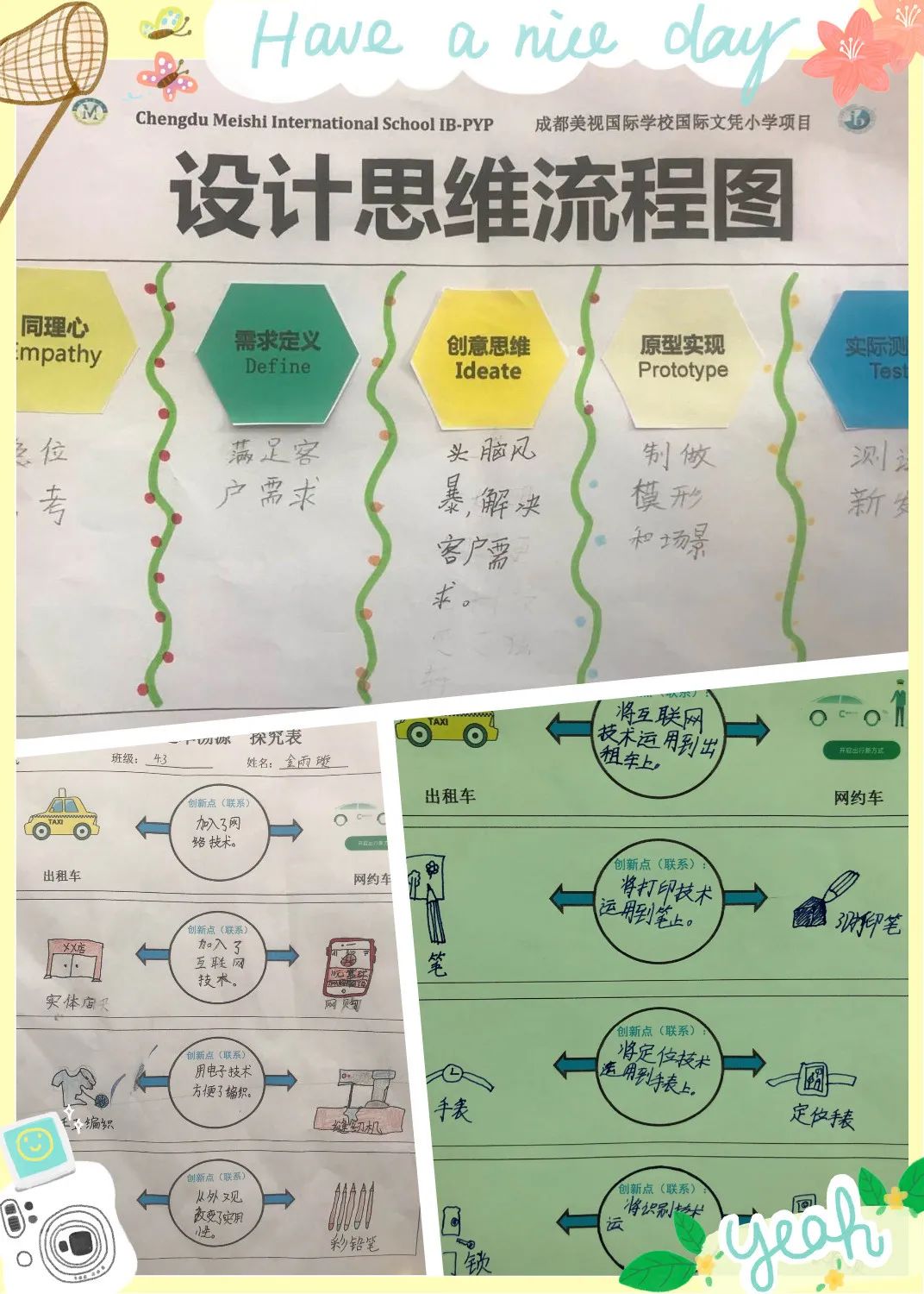在反思環(huán)節(jié),我們啟動了思考技能中的“元認知”。通過“共情地圖”、“5W2H”分析法、聯(lián)想思維、優(yōu)化迭代等去分析孩子們在小組合作中自己與他人的思考過程,以及通過思維導圖清晰地展示了出來,讓我們看到了它與各學科之間的聯(lián)系和同學們知識的淵博,真正做到了學以致用。產(chǎn)品設(shè)計采用設(shè)計思維的五個步驟來進行,即便最終未能做出滿意的產(chǎn)品,孩子們也收獲了創(chuàng)意思維和勇于嘗試的學習者品質(zhì),成為PYP全面發(fā)展的人!
