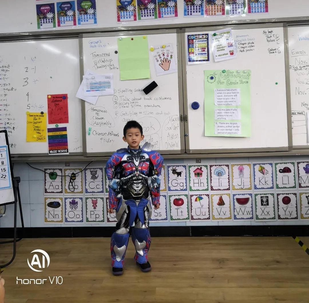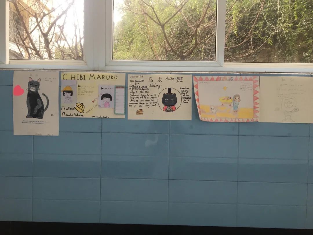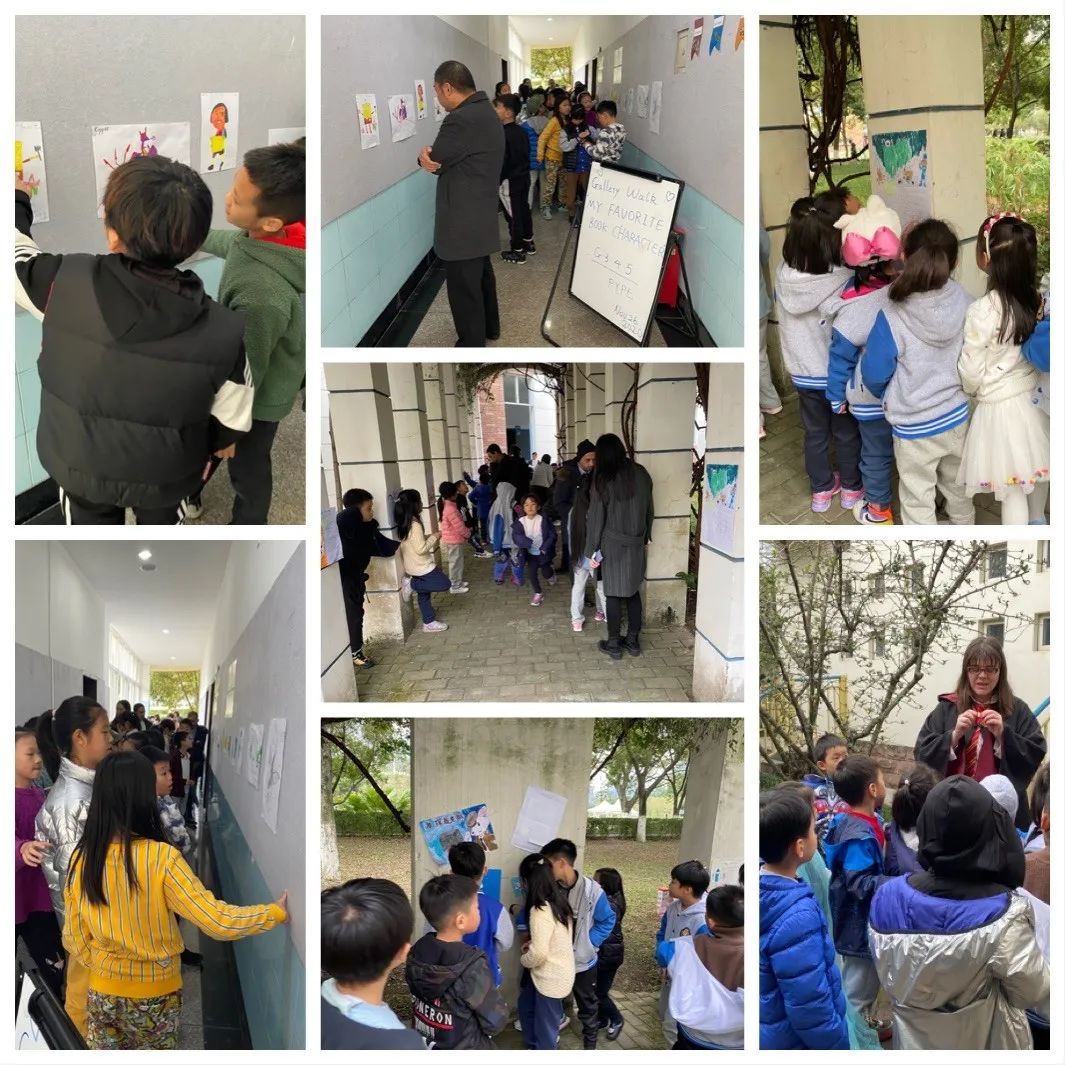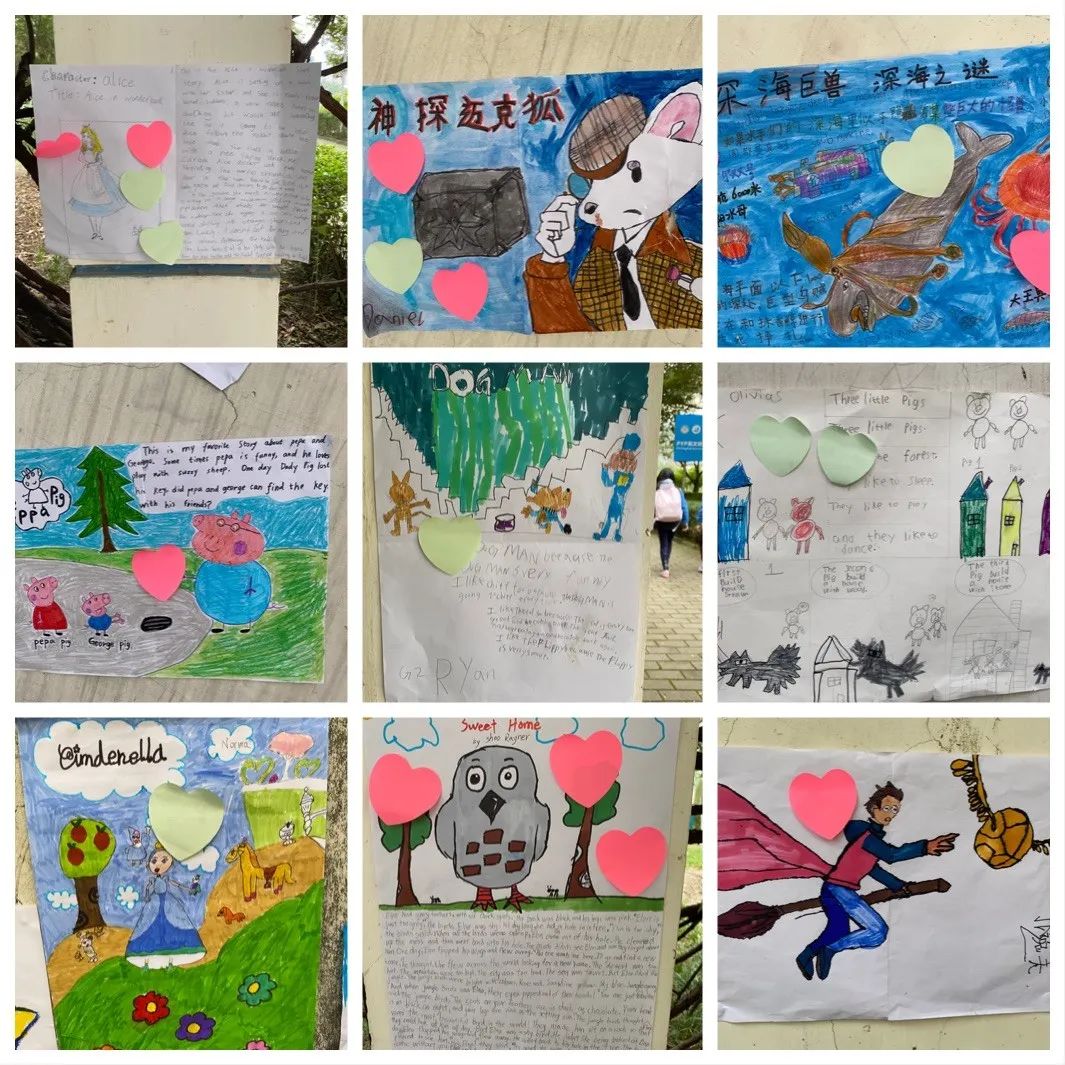 另一個(gè)精彩的活動(dòng)是藝術(shù)長廊漫步-我最喜歡的書中角色海報(bào)展。滿懷自豪的帶上“我愛閱讀”的閱讀周紀(jì)念徽章,同學(xué)們漫步長廊,欣賞彼此的海報(bào),哇,內(nèi)容是五花八門,形式是各種各樣,有的孩子還穿上了最喜歡的書中人物的服裝,直教人眼花繚亂。