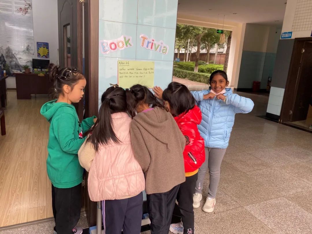 緊接著,老師們鼓勵(lì)學(xué)生們?nèi)ネ瓿擅咳兆x書探究任務(wù)。這些任務(wù)每天都貼在一樓辦公室外面,每天的任務(wù)都不一樣:比如周一采訪老師最喜歡的書籍名稱,周二找出“誰去了霍格華茲學(xué)校?” 周三去了解三位你的同學(xué)或者朋友最喜歡的書; 周四回答誰寫了“綠雞蛋和火腿”,“紅魚,藍(lán)魚,一條魚,兩條魚”和“戴帽子的貓”?同學(xué)們興高采烈,也沒人抱怨無聊,更沒人抱怨麻煩。參與活動(dòng)的同學(xué)為各自所在的聯(lián)盟積分,為集體爭光的想法讓他們樂此不疲。