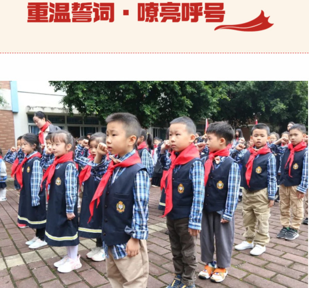 新的征程已開啟,使命在召喚!我們是祖國的未來和期望,讓我們?cè)邳h的領(lǐng)導(dǎo)下,勇于擔(dān)當(dāng),以更強(qiáng)的歷史責(zé)任感和使命感,不負(fù)黨對(duì)我們少先隊(duì)員的無限厚望,讓我們童心向黨,一起向未來! 讓我們?cè)谖逍羌t旗下莊嚴(yán)宣誓:“時(shí)刻準(zhǔn)備,振興中華,星星火炬,代代相傳!”
