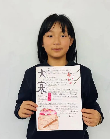 融合部·小學(xué)六三班的孩子們圍繞“大寒”節(jié)氣開展了一系列探究活動(dòng)。孩子們利用周末時(shí)間搜集資料,查找包括氣候變化、物候變化、傳統(tǒng)習(xí)俗等方面的內(nèi)容,并將整理好的資料以PPT和手抄報(bào)的形式展示出來,對(duì)“大寒”這一傳統(tǒng)節(jié)氣有了更為深入的了解。