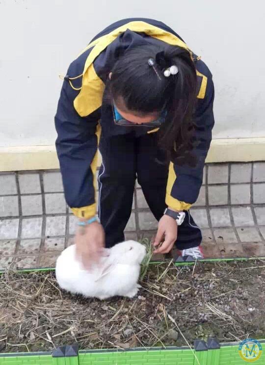 每周一下午俱樂部活動時間,一定看得到孩子們給兔子拔草,平日里毛毛躁躁的男生也認真地為兔窩當起清潔工來。周日返校時,兔子窩旁邊一定是會出現(xiàn)一些驚喜。悄悄多出一根胡蘿卜、一包干燥的飼料,甚至一個兔子飲水杯等等。