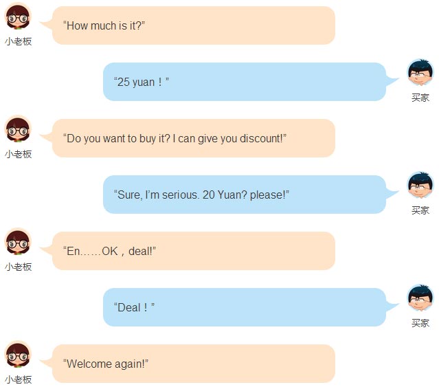 看!我們絲毫不怯場(chǎng),努力地用英文討價(jià)還價(jià)!旁邊的父母還要增加難度,讓我們把中文翻譯成英文!
