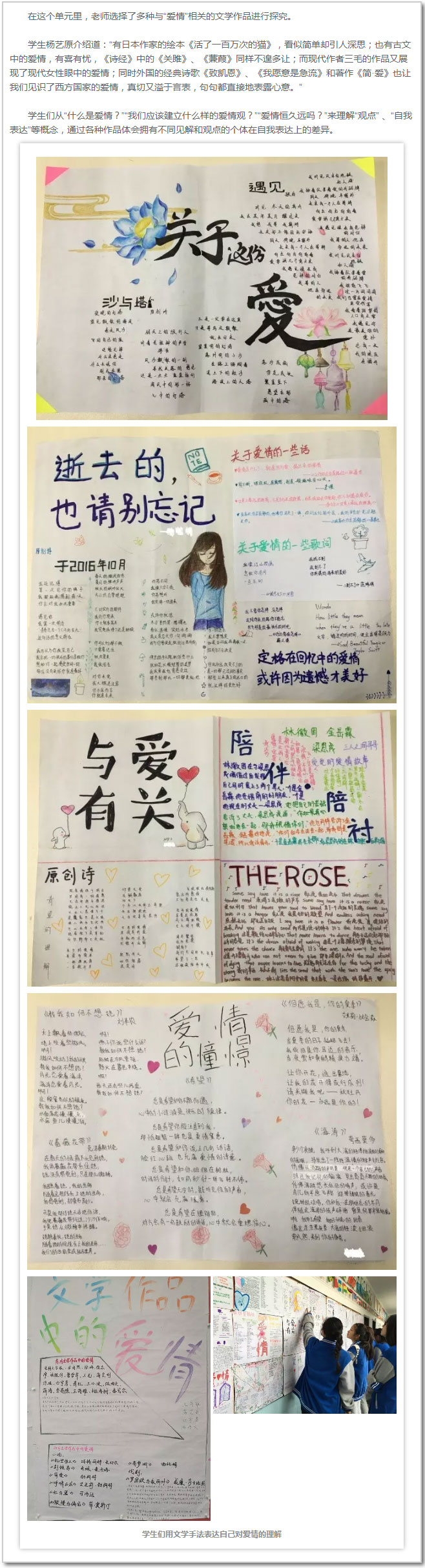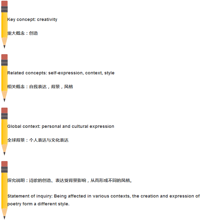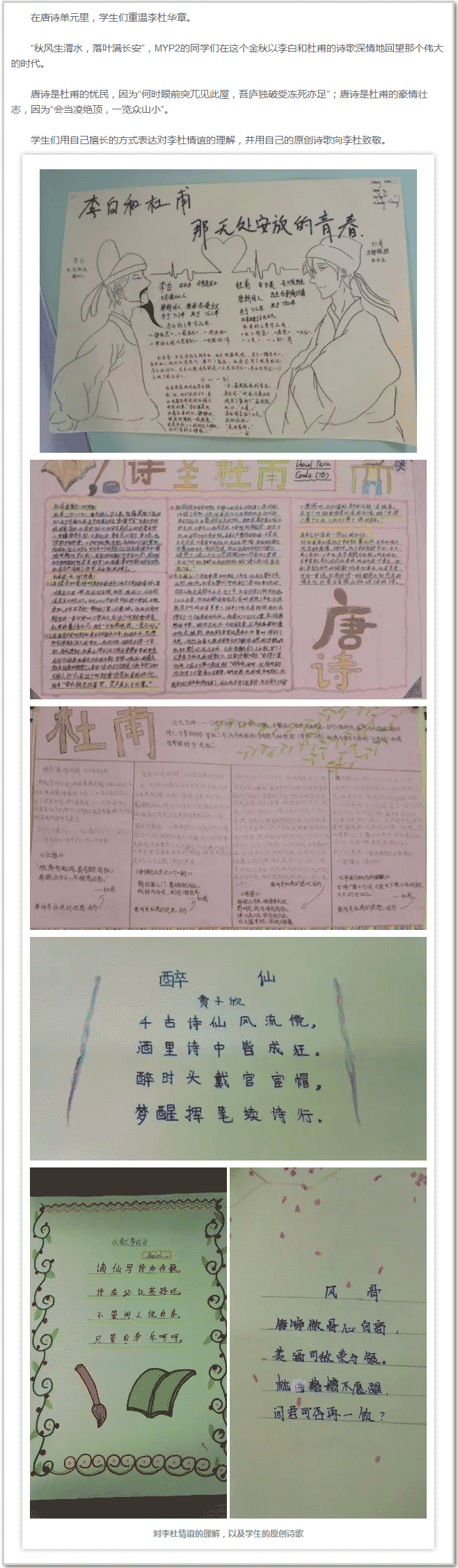 教師們根據(jù)概念和全球背景,確定本單元的探究說明,這是每個單元最為核心的內容。再選擇有利于探究的各種內容,幫助學生理解概念,提升思維能力。中學項目的語言與文學教學,不同于傳統(tǒng)語文教學,不拘泥于固有的文章分析方法與標準答案,而賦予了學生們理解作品的自由。賞析各種文學與非文學作品,運用文字表達自己的觀點或創(chuàng)作作品,百家爭鳴撞擊出思想的火花,這樣自由的氛圍怎能不吸引人!