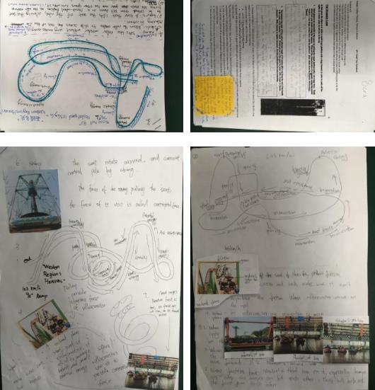 同學(xué)們按照任務(wù)要求,拿出作業(yè)本來收集信息,觀察、記錄并計算信息。為了收集足夠的數(shù)據(jù),同學(xué)們互相配合,拍攝照片,記錄了整個游樂項目的視頻,還及時詢問工作人員相關(guān)信息。