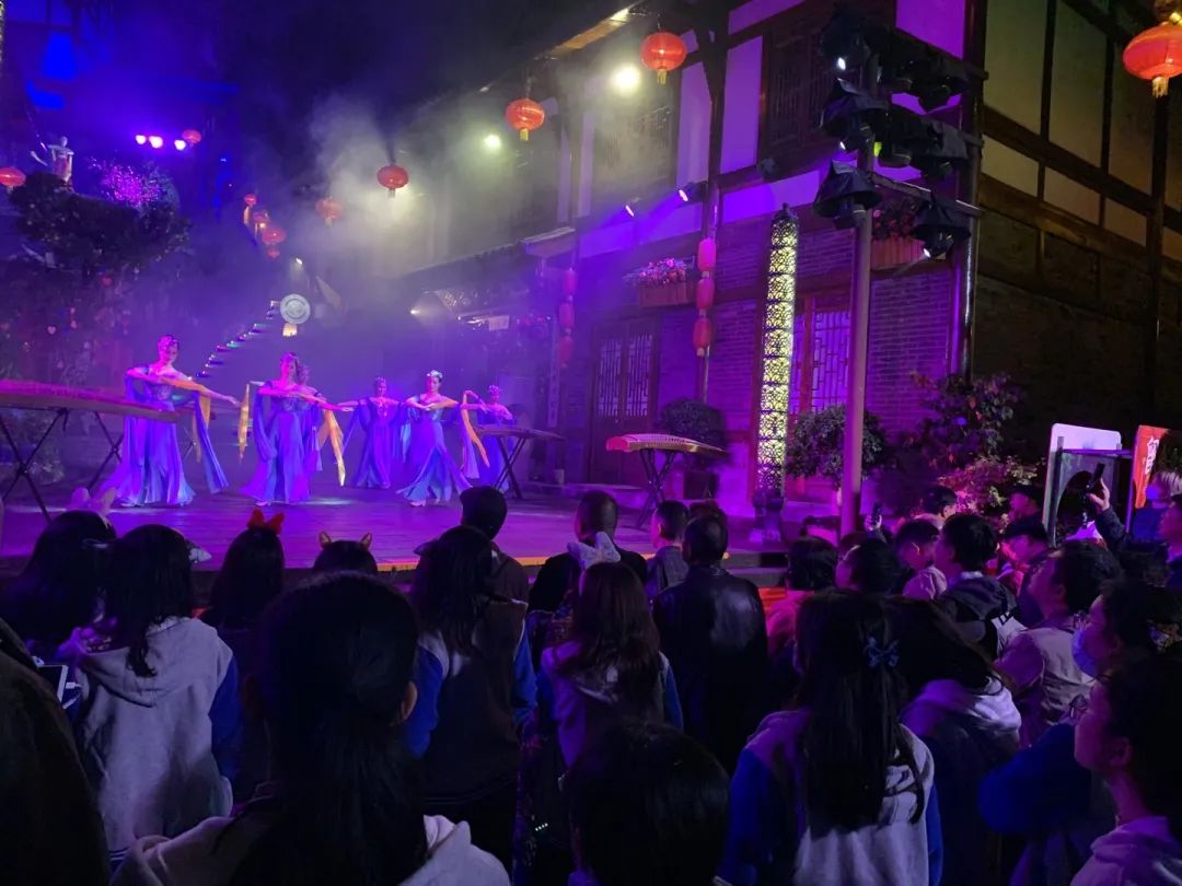 走林蔭小道,觀自然風(fēng)光,踏玻璃棧道,品靈芝仙茶,這是每一個(gè)來閬中古鎮(zhèn)的人必做的事。同學(xué)們首先參觀醋工廠,了解了食用醋從生產(chǎn)原料到釀造加工、再到儲(chǔ)存窖藏的全過程,弘揚(yáng)醋匠技藝精神,傳承四川醋古文化。在觀看“閬苑仙境”實(shí)景演出之后,踏上曲曲折折的南津關(guān)古鎮(zhèn)街道,以一步一景、亦歌亦舞的表演形式體驗(yàn)閬中本土民俗文化、飲食文化、三國(guó)文化、風(fēng)水文化、科舉文化等。