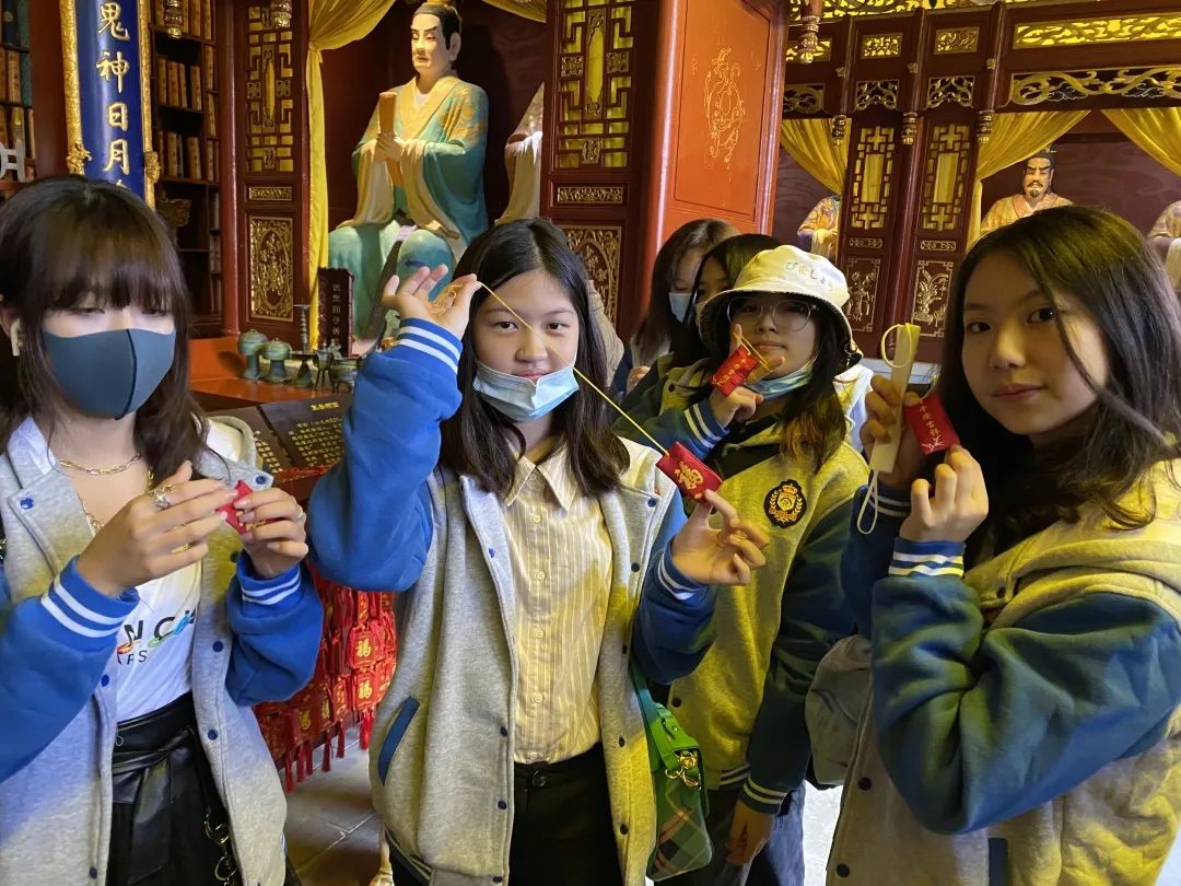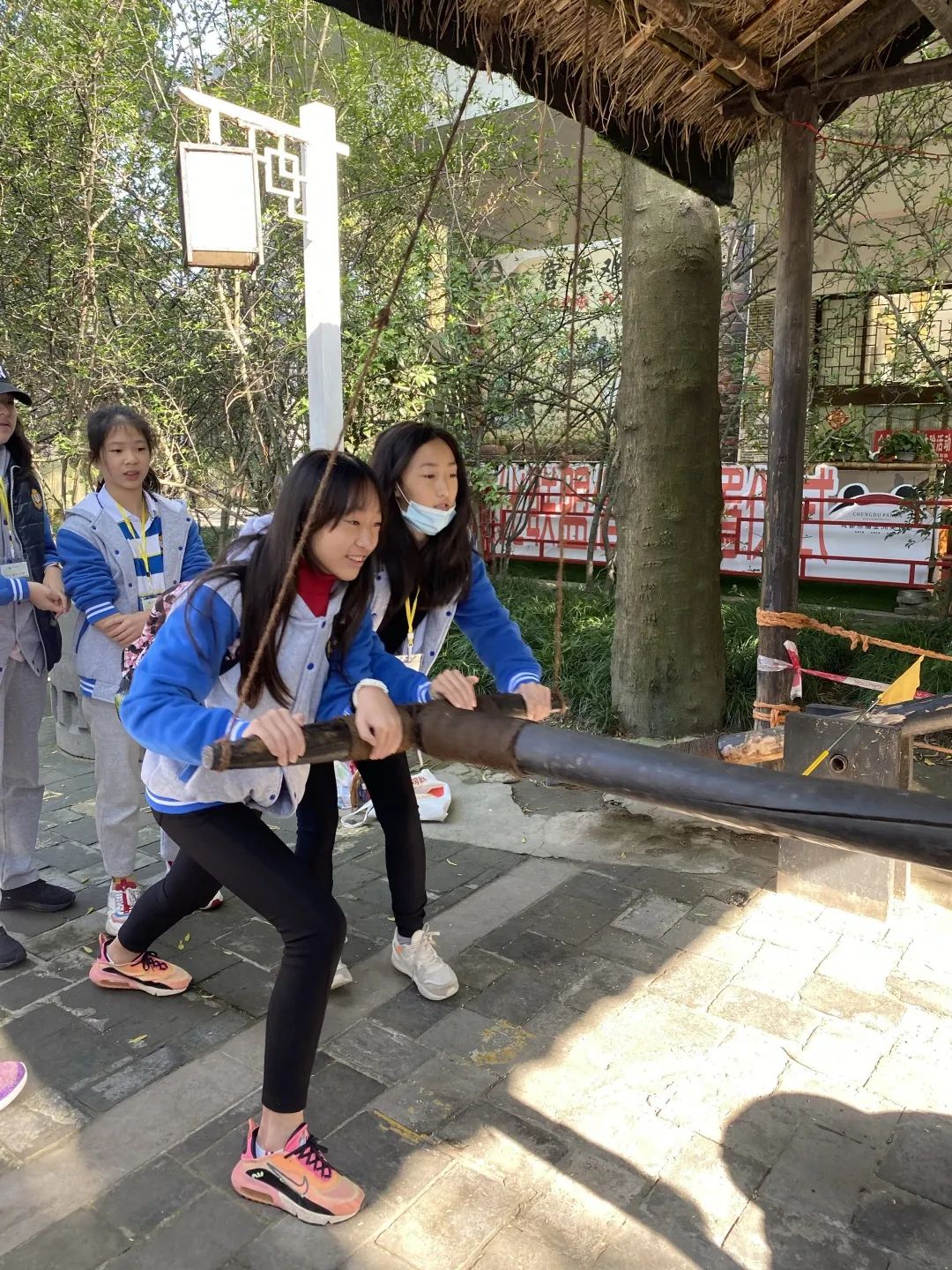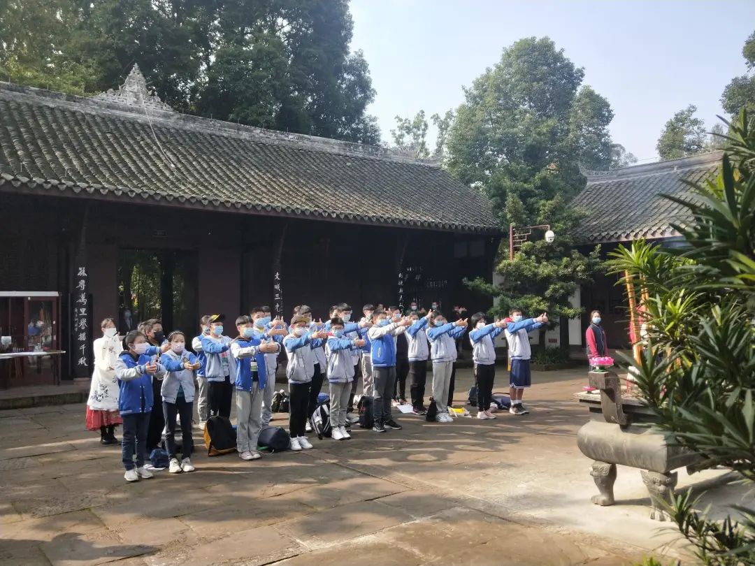同學(xué)們?cè)诶蠋煹呐阃虑巴酥袊?guó)竹藝城,參觀了竹藝博物館,欣賞了竹編工藝品,了解竹編發(fā)展歷史,并在竹林中學(xué)習(xí)竹編工藝,接著他們前往犍為文廟,參觀文廟,并著漢服參加文廟儒學(xué)活動(dòng)--拜師禮(中國(guó)人尊師重道,乃久遠(yuǎn)之傳統(tǒng),俗諺謂”生我者父母,教我者師傅”拜師禮是尊師重道的體現(xiàn)、師徒結(jié)拜的見證,是對(duì)傳統(tǒng)文化的繼承)。