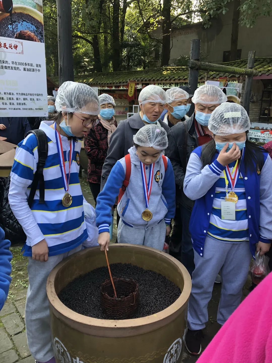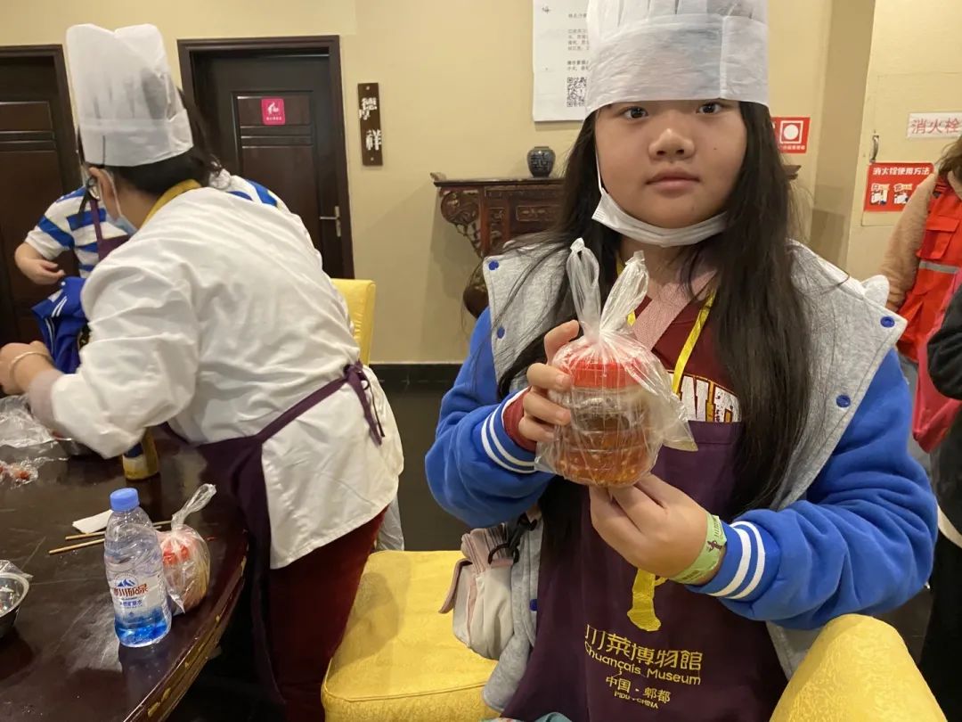 本次參觀結(jié)合了研學(xué)任務(wù):熟悉川菜做法,了解川菜歷史。首先講解員帶著大家參觀了典藏館,科普了川菜文化,接下來參觀川菜原料展示區(qū)域,川菜原料加工工具區(qū),大家認(rèn)識(shí)了各種川菜原料加工工具,了解古人的聰明智慧,而后大家參觀了灶王祠,學(xué)習(xí)了灶王文化與禮儀,同學(xué)們還觀看了川菜絕學(xué)技藝表演——蒙眼大刀金絲面,感受川菜刀功絕技的精湛神奇。手工制作環(huán)節(jié),同學(xué)們?cè)诶蠋煹闹笇?dǎo)下制作了陰豆瓣,然后帶回家,過半個(gè)月后就可以和家人一起分享親手制作的陰豆瓣了。