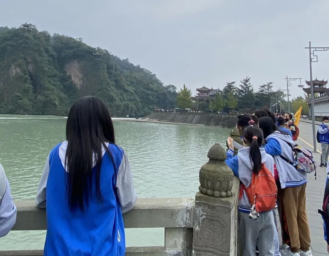 午飯后同學(xué)們前往了本次研學(xué)的第二站:都江堰水利工程風(fēng)景區(qū),跟隨講解員一同參觀了都江堰水利工程風(fēng)景區(qū)三大主體工程。都江堰渠首樞紐主要由魚嘴、飛沙堰、寶瓶口三大主體工程構(gòu)成。公元前256年,戰(zhàn)國(guó)時(shí)期秦國(guó)蜀郡太守李冰率眾修建的都江堰水利工程其以年代久、無壩引水為特征,是世界水利文化的鼻祖。本次來到這里,同學(xué)們帶著科學(xué)學(xué)科的研究任務(wù),要在參觀中思考都江堰水利工程的修建背景,覆蓋范圍,其水利工程的組成部分并且了解它的灌溉作用。