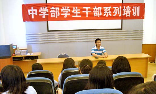 5月11日下午,中學(xué)部前任學(xué)生會(huì)主席,現(xiàn)就讀于川大華西臨床醫(yī)學(xué)院的陳云天(本碩博連讀)回母校給高中年級(jí)的所有學(xué)生干部進(jìn)行培訓(xùn)。中學(xué)部還將組織類似培訓(xùn),以期提高所有干部的管理能力。