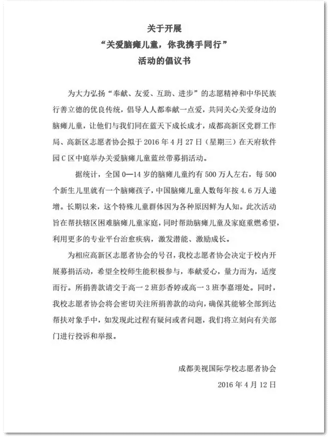 【活動(dòng)在線】藍(lán)絲帶,獻(xiàn)關(guān)愛--關(guān)愛腦癱兒童捐款活動(dòng)