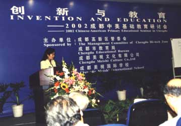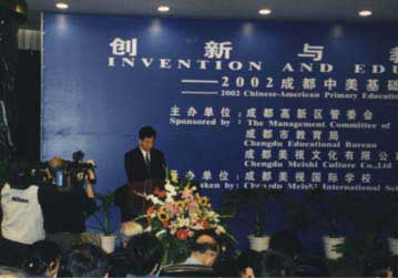 成都市人民政府參事、四川教育學(xué)院教授姚文忠先生擔(dān)任“創(chuàng)新與教育——2002成都中美基礎(chǔ)教育研討會(huì)”主持人,并發(fā)表演說(shuō)。題目:“從四川文化的特征看教育熱情的持續(xù)高漲”