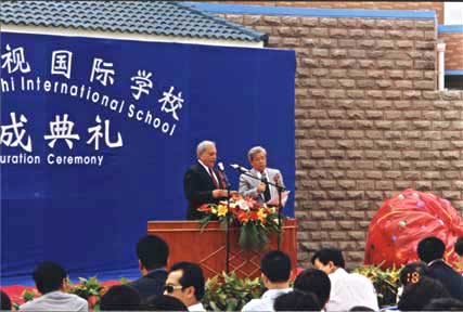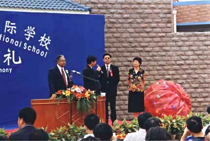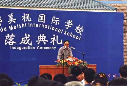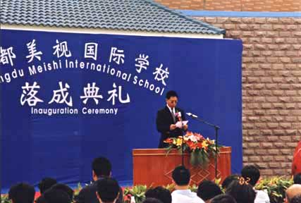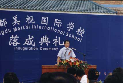 成都市教育局副局長趙學(xué)范先生在學(xué)校落成典禮上講話。