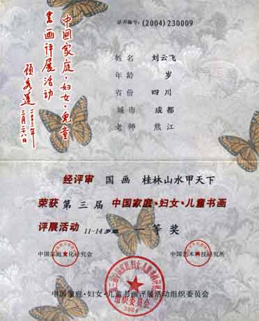 荊銀萊劉云飛、閆丹逸、寇晨瑜參加“第三屆中國家庭婦女兒童書畫平展活動”,取得佳績(06/04)