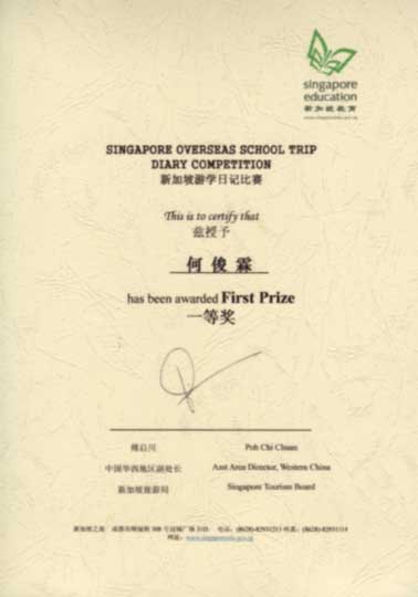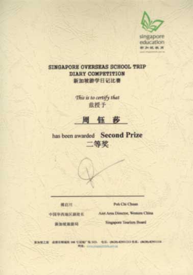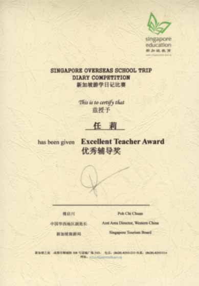 何俊霖周鈺莎同學(xué)在小記者游學(xué)“非常新加坡”征文比賽中分獲華西地區(qū)一、二等獎(jiǎng);任麗老師獲優(yōu)秀輔導(dǎo)獎(jiǎng)