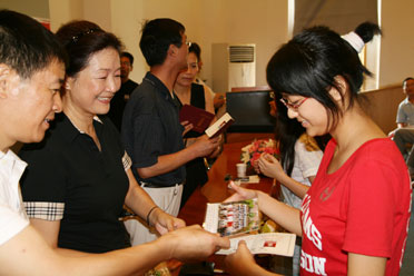 校領(lǐng)導(dǎo)向?qū)W生頒發(fā)畢業(yè)證書(shū)。