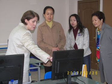成都市委、市政府副秘書長(zhǎng)李寧參觀融合部計(jì)算機(jī)教室。