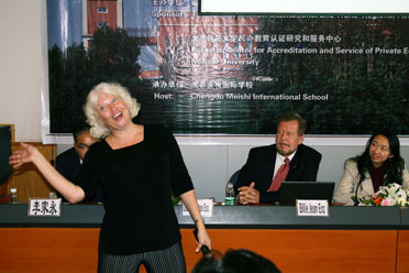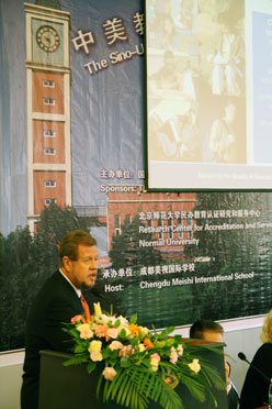 美國(guó)中學(xué)教育專家Mr. Donald Enz發(fā)表題為《國(guó)際和跨地區(qū)認(rèn)證委員會(huì)(CITA)項(xiàng)目介紹》的報(bào)告。