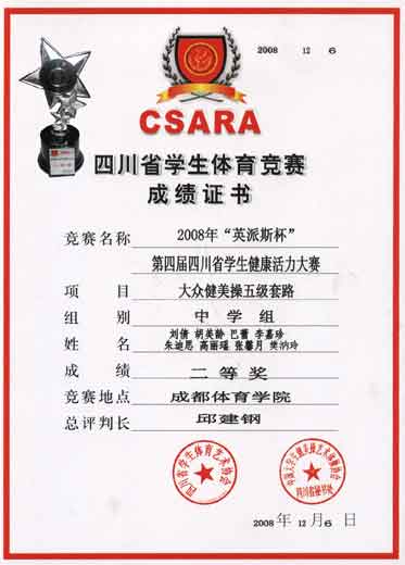 大眾健美操五級套路 中學(xué)組 二等獎