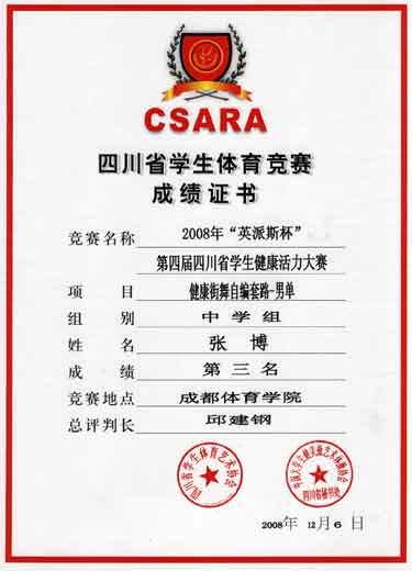 健康街舞自編套路-男單 中學(xué)組 第三名 張博