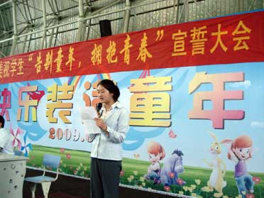 2009年6月1日,中學(xué)部舉行了中學(xué)部“告別童年,擁抱青春”宣誓大會。過活動的開展,使學(xué)生感受到自己長大了,了解青年應(yīng)承擔(dān)的責(zé)任,學(xué)會自我管理,確立正確的價值觀,推動學(xué)生健康成長;促進良好校風(fēng)的不斷發(fā)展。