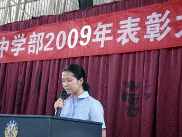 2009年6月5日,中學(xué)部在體育館舉辦了2009年優(yōu)秀學(xué)生表彰大會(huì),邀請(qǐng)了各班三好學(xué)生、優(yōu)秀學(xué)生干部、優(yōu)秀團(tuán)干、優(yōu)秀團(tuán)員、美視之星學(xué)生的家長(zhǎng)參加。