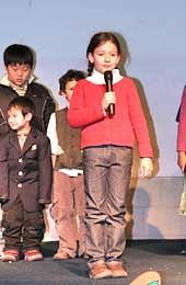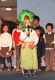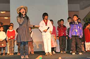 老師們和家長們都帶來了各國的特色食物與大家分享。晚上六點(diǎn)半,國際部校長戴爾·古德曼先生發(fā)表了講話。緊接著,國際部小學(xué)部的同學(xué)們上演了一出精彩的表演。同學(xué)們簡單地介紹了美國的感恩節(jié)的由來,并合唱了一首世界名曲“拯救世界”。孩子們的精彩表演打動了全場觀眾,并贏得了全場掌聲。