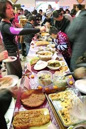 表演結(jié)束后,同學(xué)們開始售賣他們在美術(shù)課制作的精美手工藝術(shù)品;同學(xué)們會將售賣的錢為學(xué)校圖書館買書。老師們、家長們及孩子們在國際部教學(xué)樓共享來自多個國家的美食大餐。晚會于八點(diǎn)結(jié)束,大家度過了一個輕松愉快的夜晚。