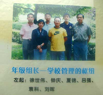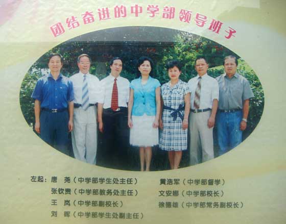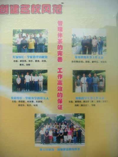 櫥窗中的中學(xué)部領(lǐng)導(dǎo)班子、班主任、年級組長、處室工作人員
