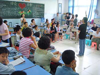 2010年6月13日下午班會(huì)課時(shí)間,初2012級(jí)初一年級(jí)七個(gè)班同時(shí)舉辦了“英語主題班會(huì)”活動(dòng)。在短短的40分鐘時(shí)間里,師生與家長(zhǎng)歡聚一堂,分享著英語主題班會(huì)活動(dòng)帶來的種種歡樂。
