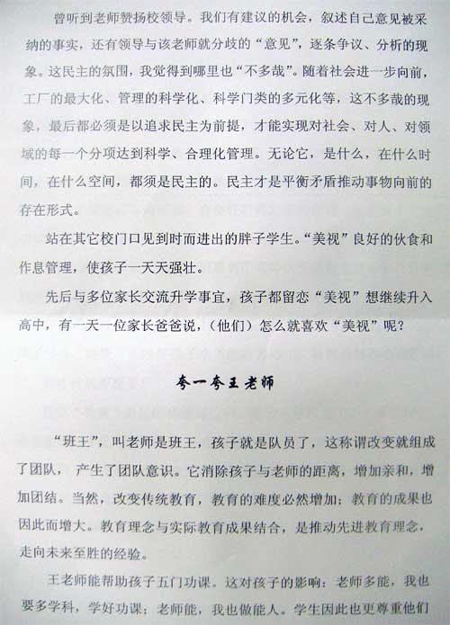 一個(gè)優(yōu)秀的老師是怎樣去影響學(xué)生的,一個(gè)優(yōu)秀的班主任又是怎樣去感動(dòng)家長(zhǎng)的,一個(gè)優(yōu)秀的學(xué)校又是如何獲得學(xué)生、家長(zhǎng)認(rèn)可的?王世杰老師,初2010級(jí)初三(1)班班主任,被學(xué)生尊稱為“班王”。班王以其德影響學(xué)生,以其能慰籍家長(zhǎng)、以其行榮譽(yù)學(xué)校。王世杰做了一個(gè)教師一個(gè)班主任應(yīng)做之事,盡了一個(gè)班主任應(yīng)盡之責(zé)!