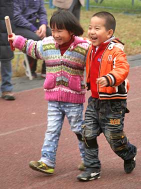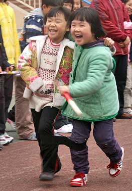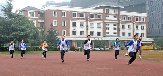 成都美視師一學(xué)校第九屆小學(xué)部田徑運(yùn)動(dòng)會(huì)于2010年11月1日隆重舉行,運(yùn)動(dòng)會(huì)除設(shè)有廣播操比賽和跑、跳、投等傳統(tǒng)項(xiàng)目外,趣味運(yùn)動(dòng)集體比賽是孩子們最喜愛的項(xiàng)目。孩子們?cè)趫鰞?nèi)場外的歡聲笑語中盡情享受著體育活動(dòng)帶來的歡樂。