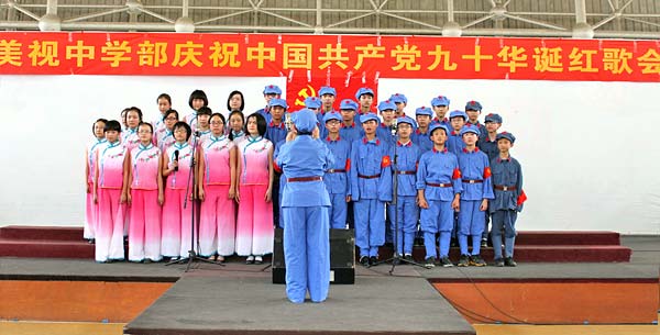 今天,我們美視中學部全體黨員全體師生歡聚一堂,唱響紅歌,熱烈慶祝中國共產(chǎn)黨成立九十周年!