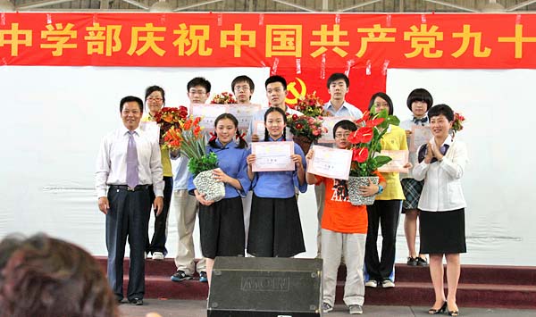 4月29日下午,美視學校中學部黨支部、行政在校體育館聯(lián)合舉辦了“慶祝中國共產(chǎn)黨90華誕”紅歌會。