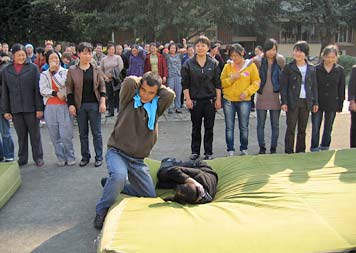 摔倒后的保護(hù)姿勢                                                           滅火毯使用演練