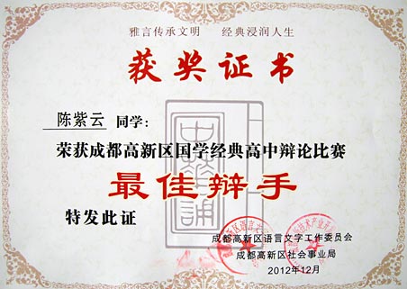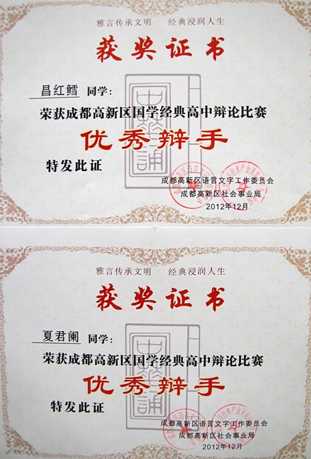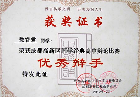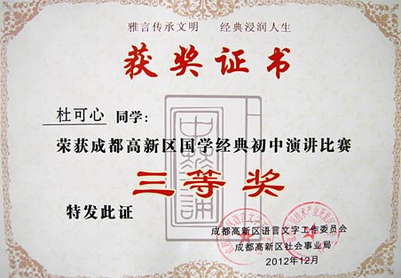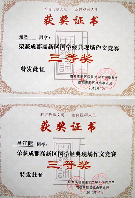祝賀我校在成都高新區(qū)國(guó)學(xué)經(jīng)典系列比賽中取得佳績(jī)